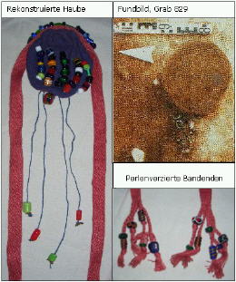 Rekonstruierte Haube und Fundbild