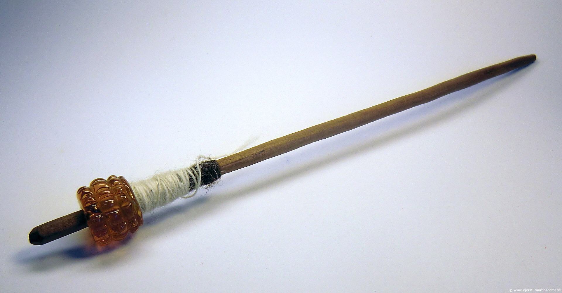 Ein Spinnwirtel ist ein Gewicht, welches an einem Stab befestigt wird und so als Schwungrad zum Verdrillen und Verzwirnen von Fasern dient. Besonders im Frühmittelalter zur Zeit der Merowinger findet man solche Glasperlen häufig in Frauengräbern. Liegen diese außerhalb - sprich neben dem Körper oder am Fußende der Bestattung - gehen die Archäologen von einer Verwendung als Spinnwirtel aus.