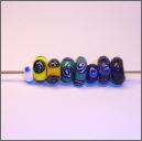 - Spiralperlen, radial gebänderte Perlen, solche mit Schraubfäden und Gittermuster