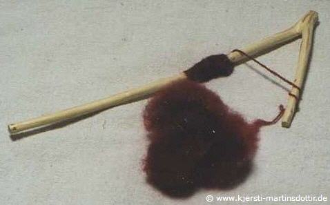 Mit dem Asthäkchen habe ich selbst das Spinnen erlernt. Es handelt sich ganz einfach um eine umgedrehte Astgabel. Mit der Fallspindel hatte ich zwar erste Versuche gemacht, war aber kläglich gescheitert. Also bekam ich eine Astgabel und es klappte. Ich machte meinen ersten Faden mit Schafswolle. Allerdings brach ich dann der Astgabel die Nase ab, was mir furchtbar peinlich war, aber es hielt meine Freundin nicht davon ab, mir sofort eine neue zu machen.