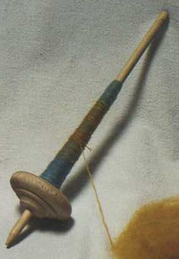 Die Fallspindel ist unter den Handspindeln die wohl bekannteste und am meisten benutzte. Es gibt Abbildungen aus dem Alten Ägypten und Funde von Spinnwirteln ziehen sich durch alle Zeiten von der Bronzezeit bis ins Mittelalter. Eine Fallspindel besteht aus nur zwei Teilen: dem Spinnstab und dem Spinnwirtel. Der Spinnstab kann ein gerades Rundholz sein oder abwendig gedrechselt. Als Material kennt man Holz, Bein und Metall. Bei den Wirteln gab unzählige Materialien, Formen und Verzierungen. Gefunden wurden solche aus Holz, Ton, Bein, Stein, Glas und Bernstein. Heute werden auch Wirtel aus Metall verwendet.