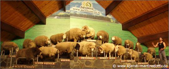 Am liebsten mag ich Wolle von neuseeländischen Romney-Schafen. Ursprünglich stammt diese Rasse zwar aus der englischen Romney Marsh, einer Marschlandschaft in Kent. Sie wurde aber schon früh nach Neuseeland importiert. Diese Rasse ist sehr robust. Die Herden bleiben meist den ganzen Sommer auf sich allein gestellt in den Hügeln des MacKenzie-Countries der Südinsel Neuseelands. Die Rasse lässt sich gut mit anderen kreuzen. Die Schafe kommen in vielen verschiedenen Farben daher, von schneeweiß über gelb, von hellbraun bis fast schwarz ist alles dabei. Die Wolle ist flauschig und langhaarig, allerdings etwas kratziger als die des Merinoschafs. Die Wolle von Romney-Schafen, ich verspinne, habe ich meist direkt von meinen Reisen mitgebracht oder vor Ort während meines Aufenthalts 2004/2005 in der Christchurch Spinner's and Weaver's Guild versponnen.